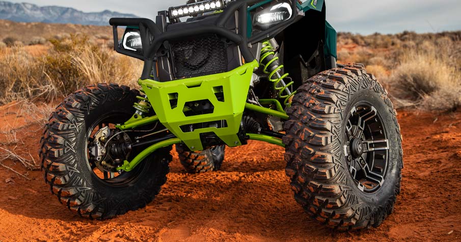 2 modes de conduite : Performance/Standard, Prise d'alimentation 12 volts, pré-câblée pour chauffe-mains et chauffe-pouces, port de chargement de batterie indépendant, Pare-chocs avant, plastiques peints, ressorts peints, élargisseurs d'ailes